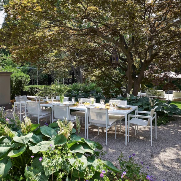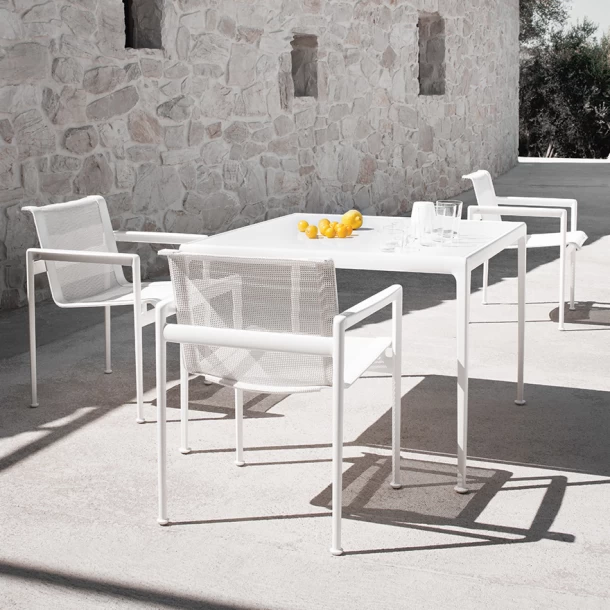 Richard Schultz’s outdoor dining chairs have been setting the scene for modern meals outdoors for over 50 years. The aluminum frame makes them resilient to weather and wind, while the signature mesh back keeps you cool.