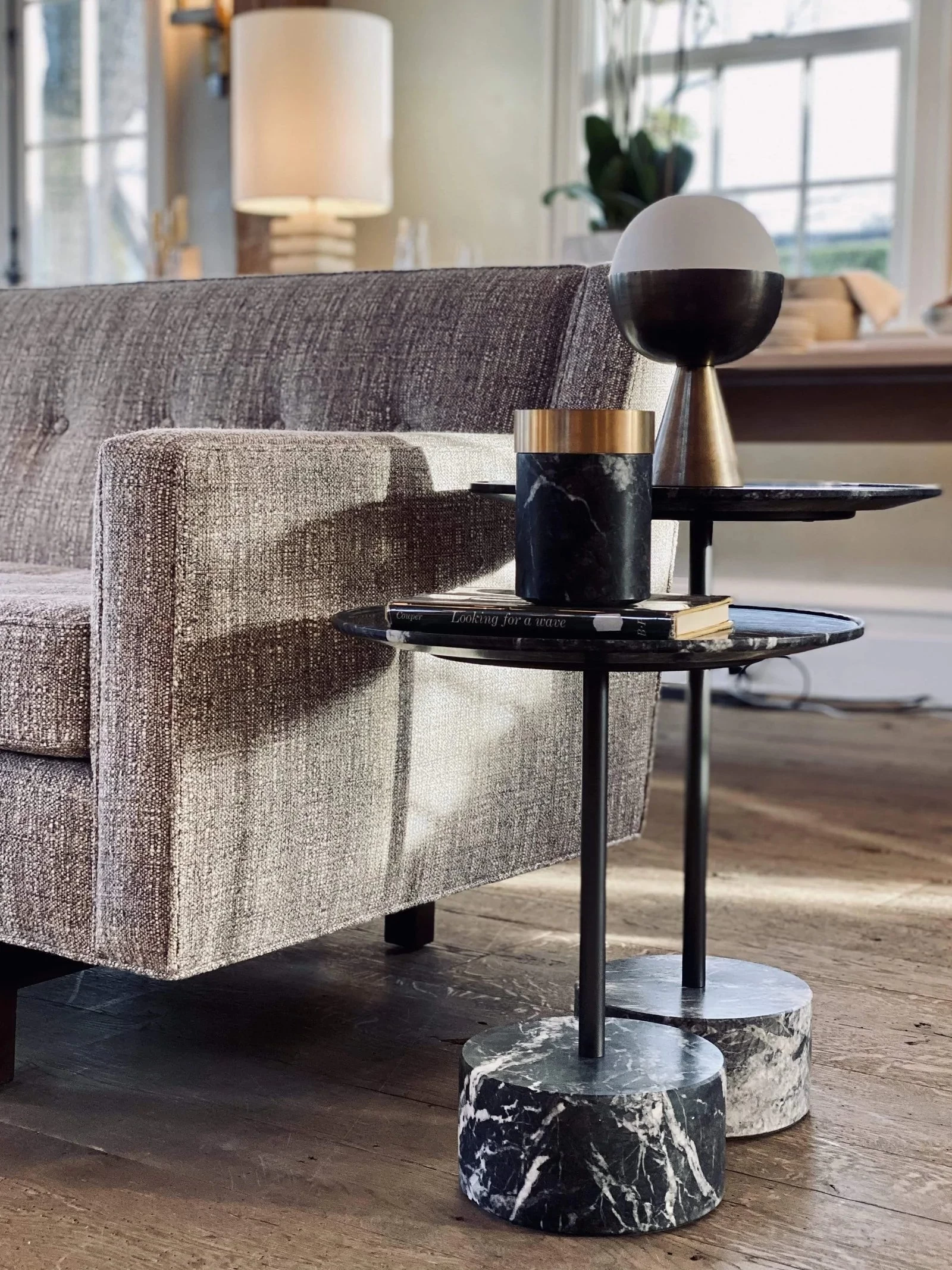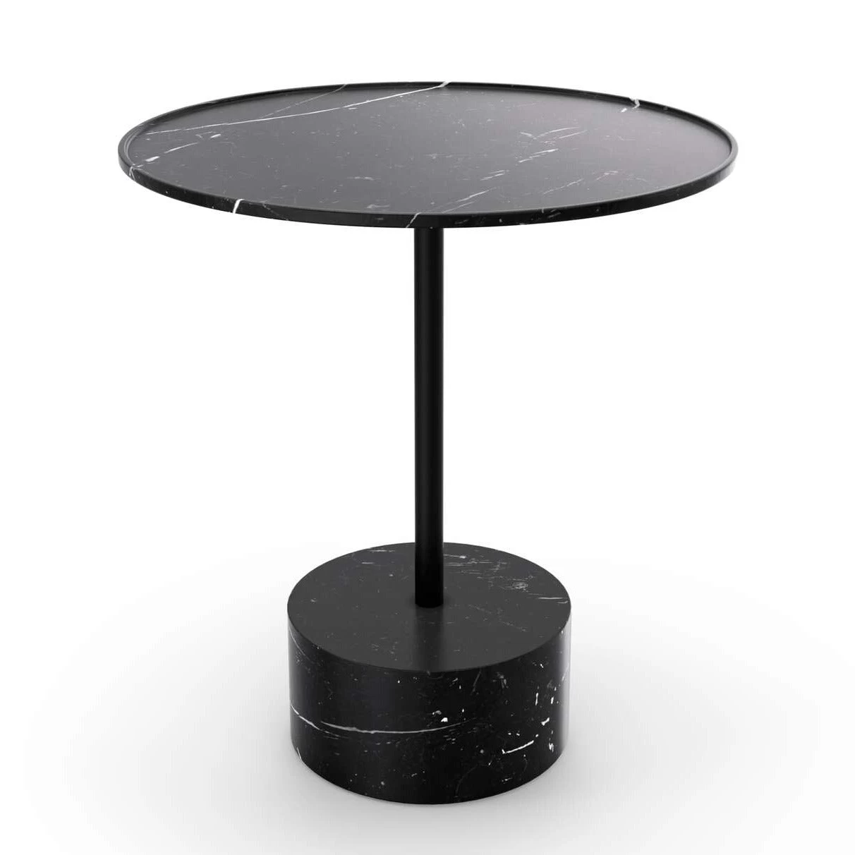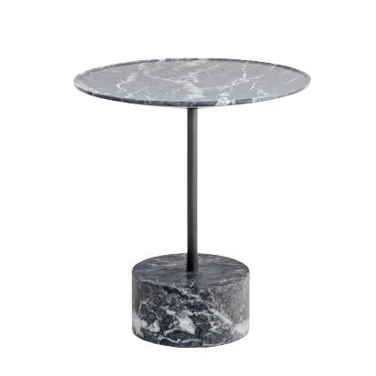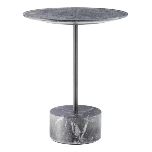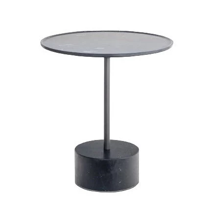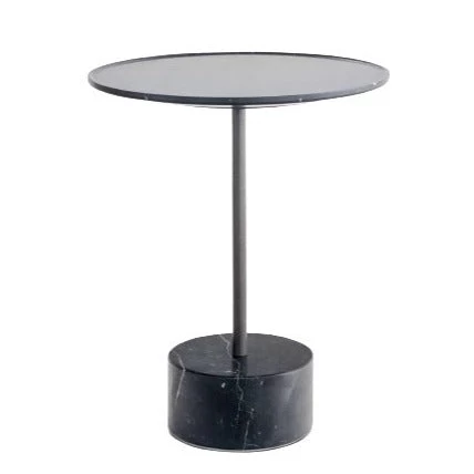 Side table with a marble base and a top in a choice of materials and finishes. Stem in extruded aluminum with a gunmetal grey or matte anthracite finish and top support in die-cast aluminum.