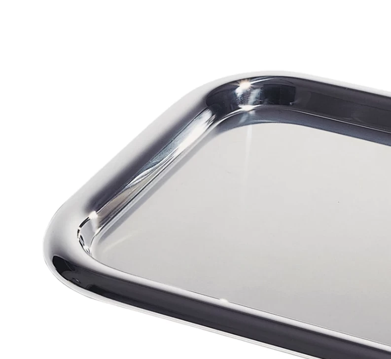 An Ettore Sottsass designed rectangular tray in 18/10 mirror-polished stainless steel.