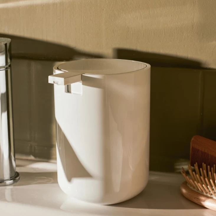 Liquid soap dispenser in white PMMA. Two sizes available.Â