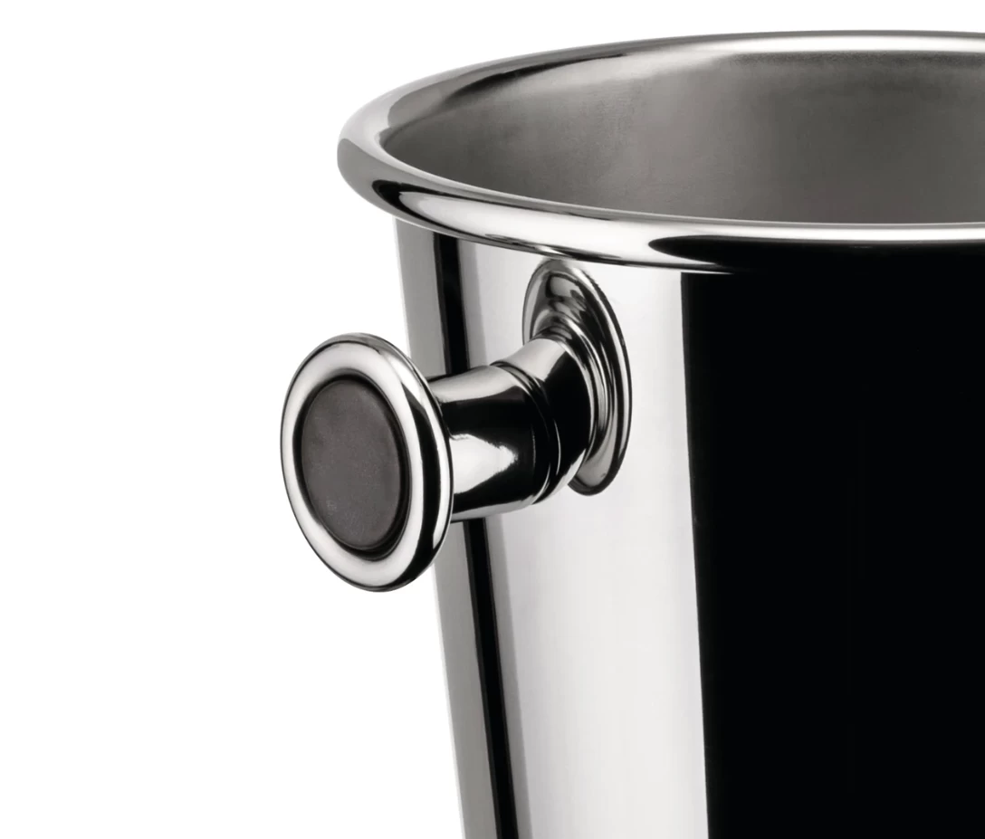 Ice bucket with handles and grill in 18/10 stainless steel, polished outside and satin finish inside.Â