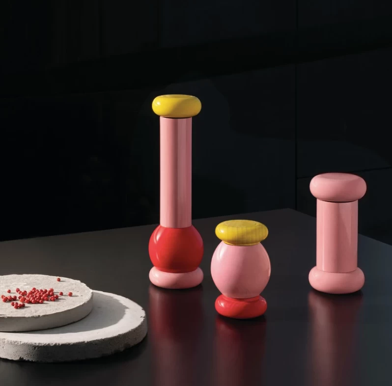 A salt, pepper and spice grinder in beech wood that comes from a unique overlapping of coloured volumes typical of Ettore Sottsass’s style. Taste friend, it transforms the simplest dishes into tasty meals, thanks to the intensity of freshly ground aromas. A small colourful sculpture that can be used at the table and left in sight on kitchen counters