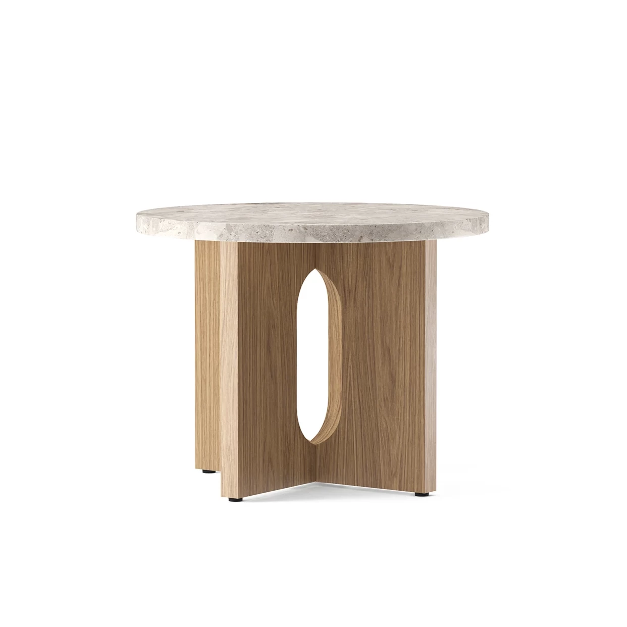 Side table available in a choice of stone and marble tops and a base in powder-coated steel or wood. Available in two sizes.