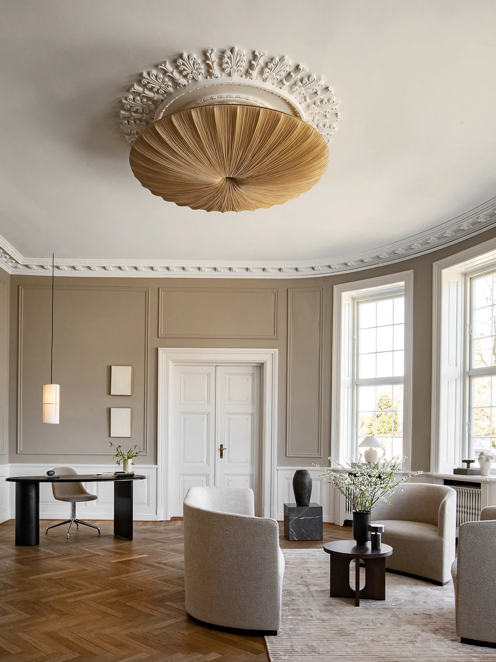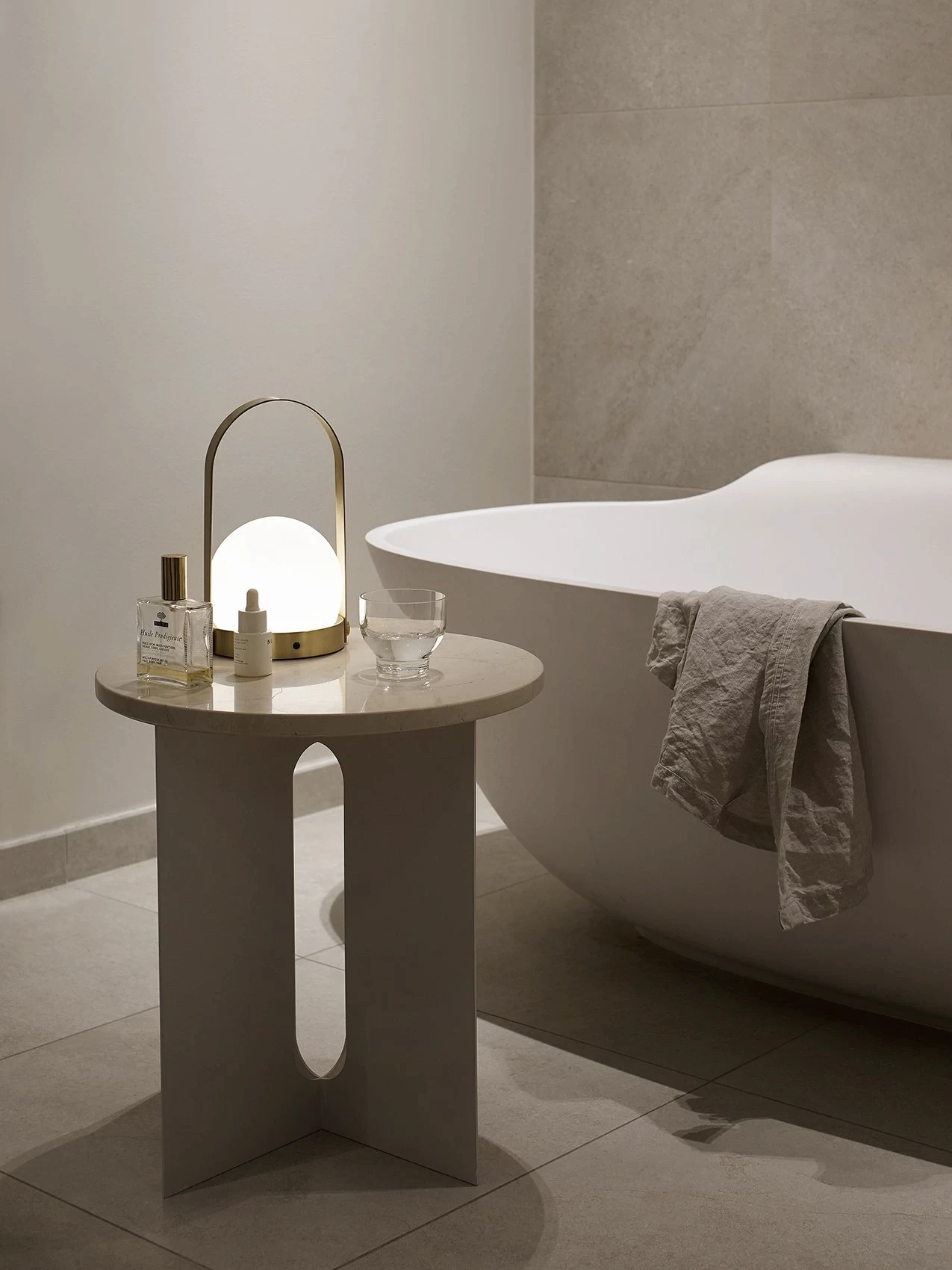 The perfectly proportioned table comprises a sturdy powder-coated steel base on which a rounded marble tabletop is balanced. The table’s refined marble top, which barely hangs over the legs to create an overall sense of balance, and contrasting wide, flat legs – laser-cut for precision – make it an easy fit for a range of décor styles. Both base and top are available separately and in ivory or black powder-coated steel and white, black or calacatta viola marble respectively for total customization.