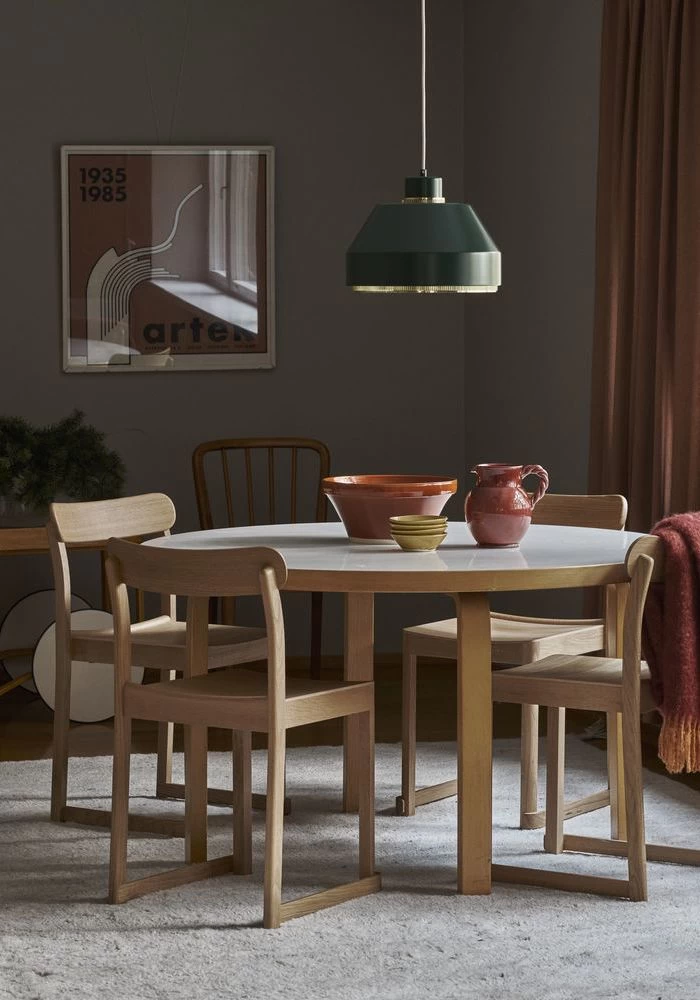 The Aalto Table conveys a relaxed familiarity that resists categorization. With legs and edge bands of Finnish birch, it radiates natural beauty and warmth, moving easily between public and private spheres in accordance with Alvar Aalto’s conception of versatile furniture. The top is available in birch, linoleum, or laminate, materials that age gracefully over time and last across generations. All-natural linoleum offers the ideal surface for writing, while easy-to-clean laminate provides a slightly more robust option. Whether used for dining, working, or playing, the table retains its character while offering endless possibilities.Â