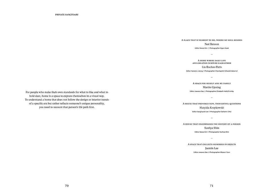 “The Home” focuses on houses that shows a distinct attitude of the owner on the way he or she views the space rather than just style, size, or structure. They also categorized the homes that share a similar value. For example, a person that lives and work from home would go under ‘Home Office’ while someone who chose to live in the suburban area that prefers freedom over convenience would be categorized as ‘Rural Life’. Starting with the short interview with Suyong Joh, Magazine B’s editorial team met with numerous creators all over the world to hear their opinion on the meaning and purpose of home and how homes can be so much more than the typical house we experience in our daily lives.
