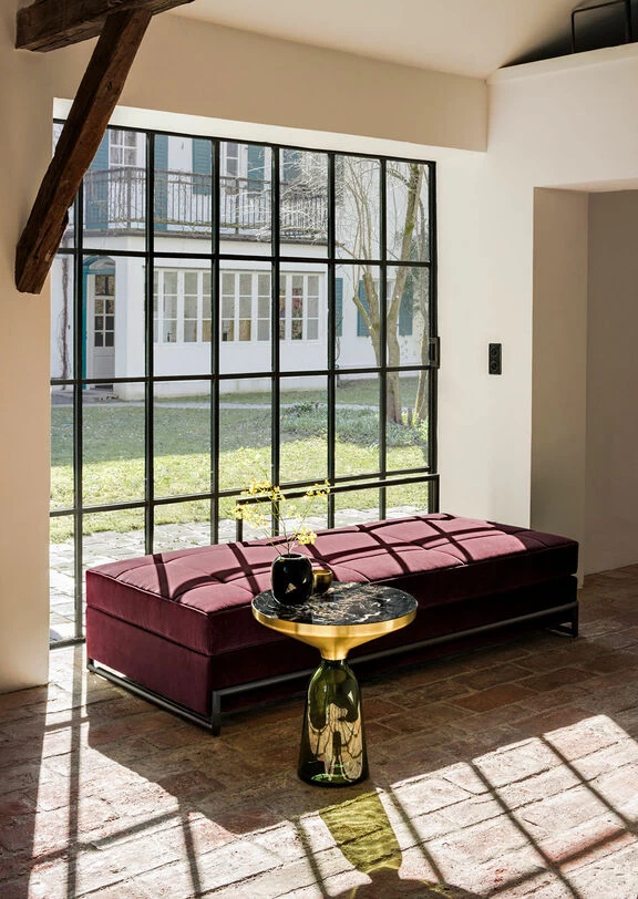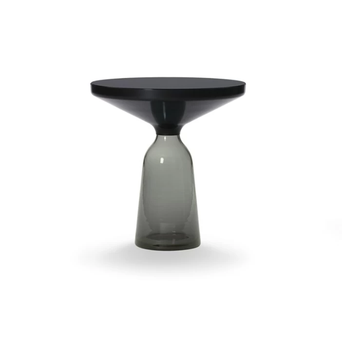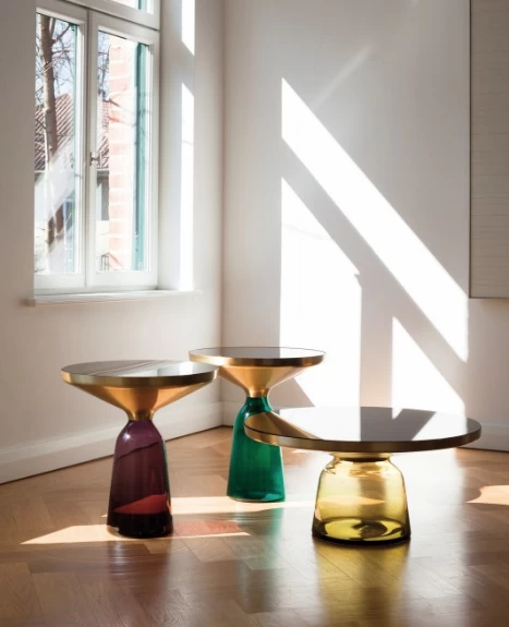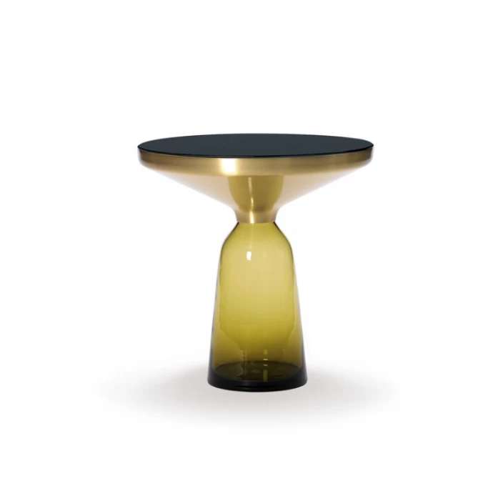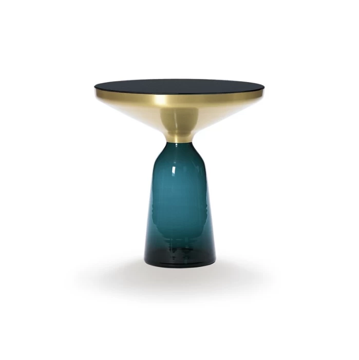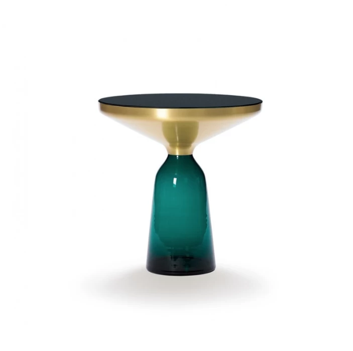 The Bell Table by Sebastian Herkner turns our perceptual habits on their head, using the lightweight, fragile material of glass as a base for a metal top that seems to float above it. Hand-blown in the traditional manner using a wooden mould, the transparent tinted glass base asserts a sculptural presence in space, contrasting intriguingly with the solid brass frame on top while also forming with it a harmonious unit recalling the elegant curving silhouette of a bell. With its appealing reflective surfaces and contrasting materials, the side table adds a distinctive touch to domestic interiors. It celebrates the beauty of the materials with their colours and surfaces, along with the virtues of hand-craftsmanship. The Bell Table by Sebastian Herkner is a masterwork of traditional hand craftsmanship. Each table is handmade, meaning that small bubbles or bumps in the glass are a characteristic feature.