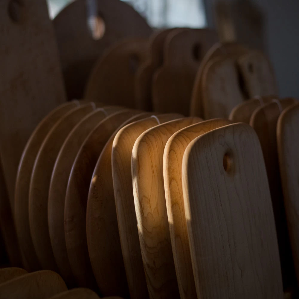 Hand-made solid cutting board made of bird’s-eye maple.