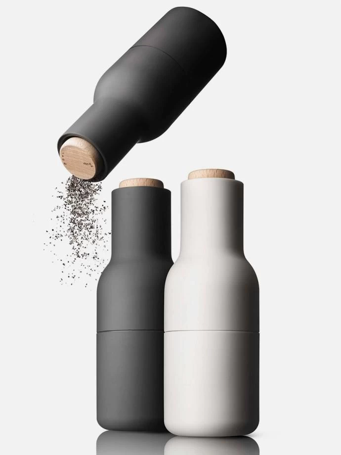 Steering away from the predictable grinder, the Norm ‘Bottle Grinder’ is not what you expect to see in a salt and pepper grinder. The form, shaped more like a bottle, cleverly tricks the user to encourage a more playful and experimental interaction with the product. The powerful ceramic mechanism makes the grinder easy to operate and perfect for trying out more than just salt and pepper including spices and grains, nuts, seeds or dried fruits. You simply open them, fill them with delicious ingredients and close them again. Simple as that.