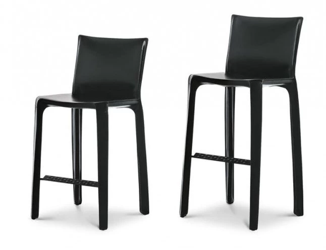 Stool with a metal frame fully upholstered in saddle leather in a choice of finishes. Available in two heights