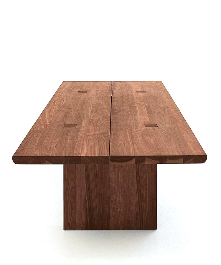 Dining table in a smooth edge oiled walnut without knots in the wood finish. Available in two sizes.Â
