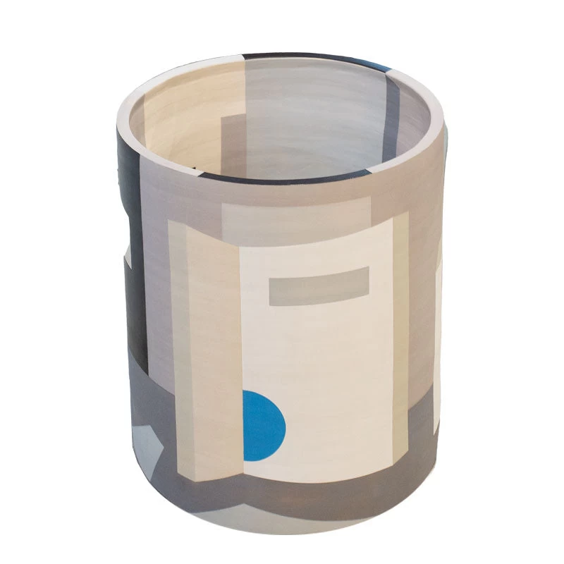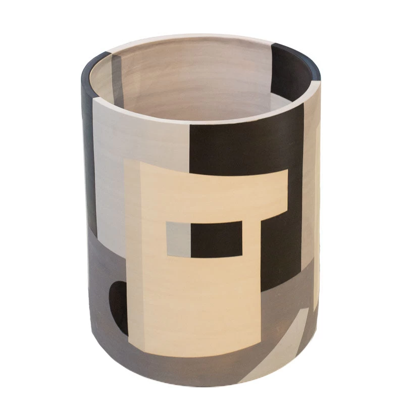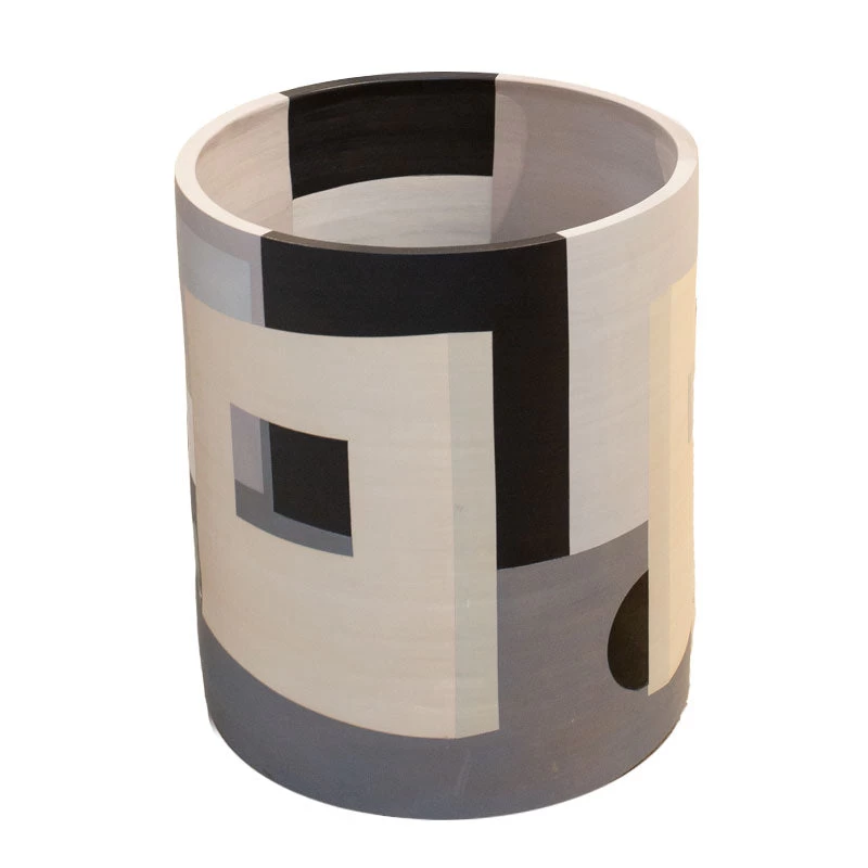 Large ceramic handmade vessel with architectural hand-painted design. Food safe paint and glaze.