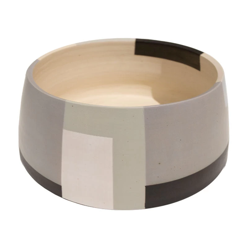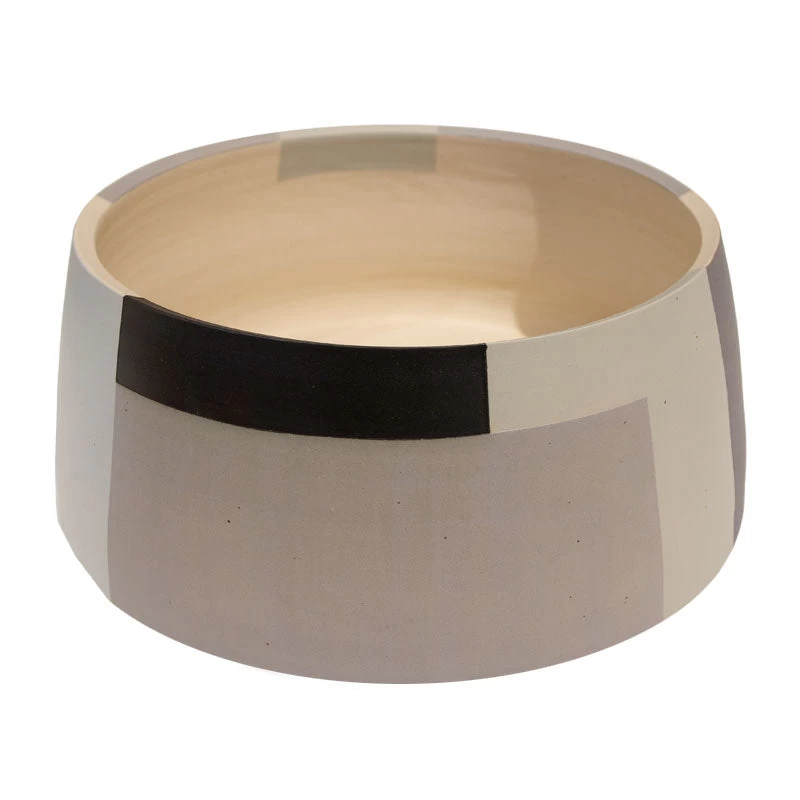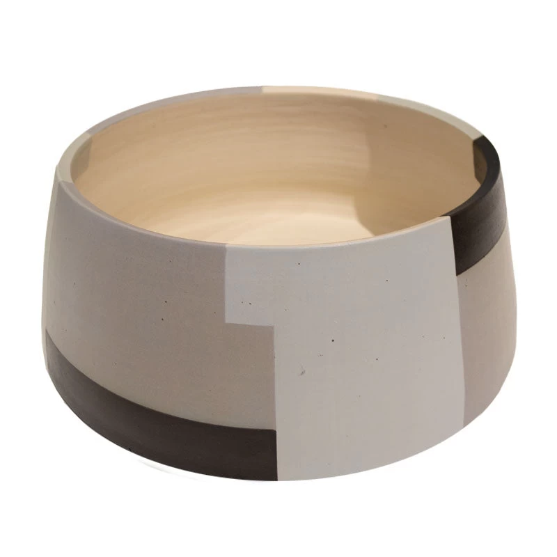 Ceramic handmade vessel with architectural hand-painted design. Food safe paint and glaze.Â