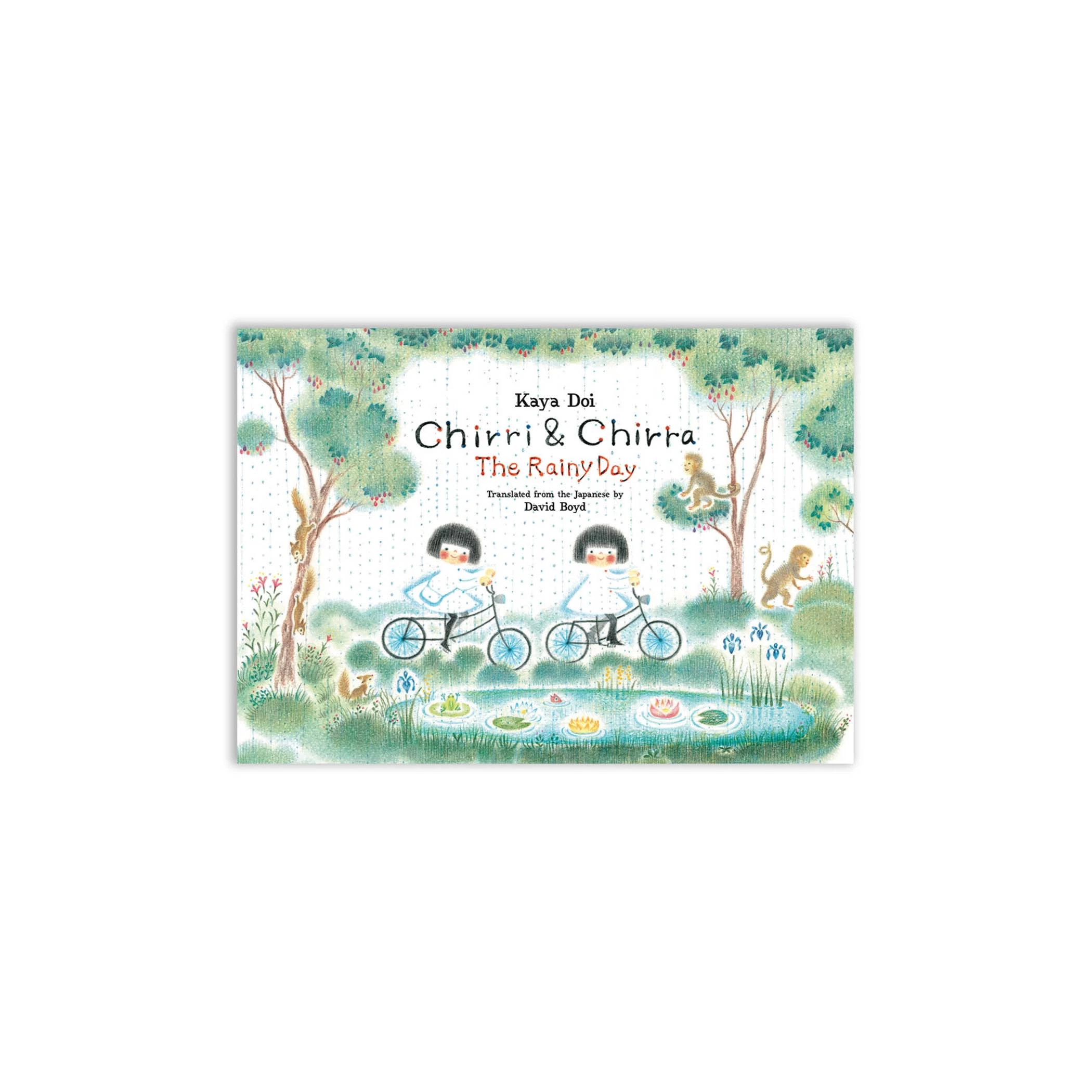 Dring-dring! With the distinctive sound of their bicycle bells, Chirri and Chirra are off on another whimsical adventure. In this new installment of the beloved series, the twins brave a rainy day together… after all, stormy weather is no match for their boundless energy and curiosity. The pair happens upon a cafe that is only open on rainy days, and they sip tea with a side of sweet rock candy as they watch the droplets fall. They continue their journey, only to discover that the rainis now falling upside-down, their bicycles suspended on the droplets as they ride along. For these winsome twins, the world is a haven of endless discovery, of wonderful oddities, of adventure and excitement without danger.