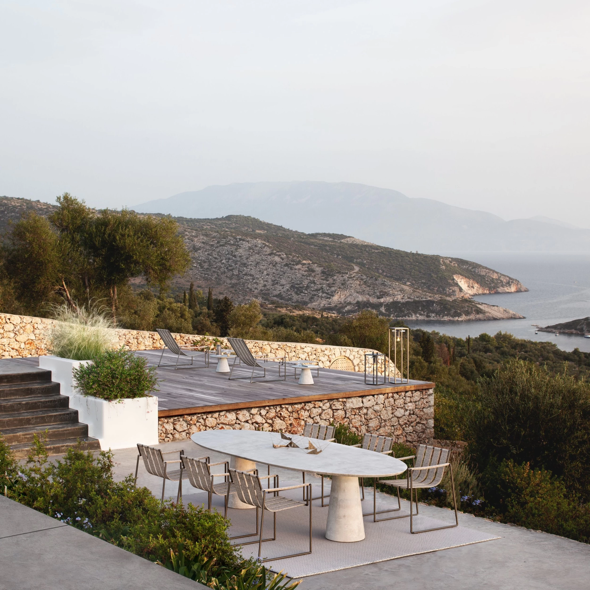 Designed by Kris Van Puyvelde, the name of this table collection refers to the conical shape of the concrete base. Cast in fibre-reinforced Ductal® concrete with a matching elliptic table top, the concrete surfaces are polished and treated to make them less porous.