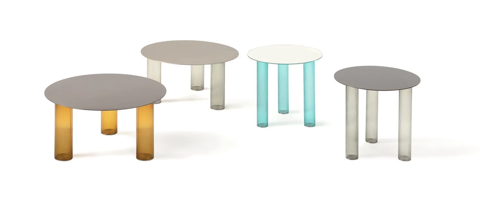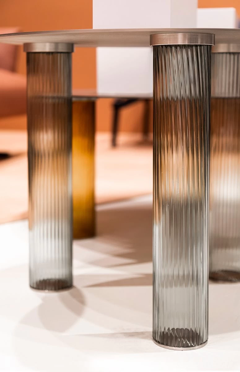 Sebastian Herkner, renowned for his particular sensitivity toward the glass, designed a pair of small tables where the glass strength and durability are axiomatically used for developing the concept of the entire product.
