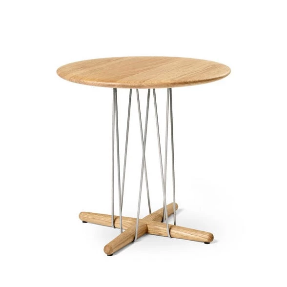 The Embrace Lounge Table E021 is available in two heights – as a low coffee table and a slightly taller and slimmer side table. Both versions highlight the light expression of the Embrace Series, where the circular wooden tabletops seem to float on stabilizing steel structures inspired by kites blowing in the wind. Designed by Austrian design trio EOOS for Carl Hansen & Søn, the Embrace Lounge Table fits with any interior, both public, private and corporate.