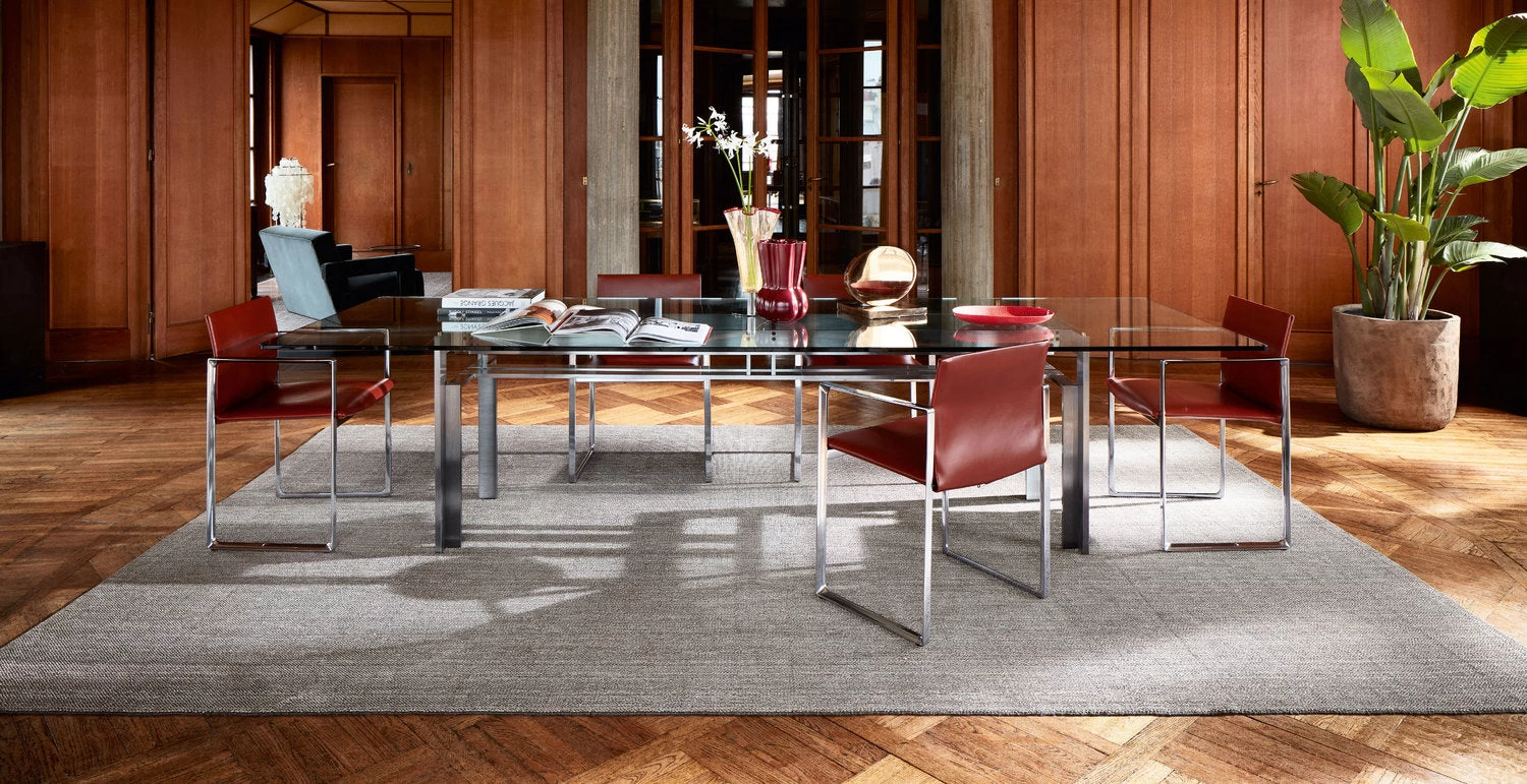 A minimalist design chair with pure modern lines and a dual nature. Designed by Piero Lissoni for Cassina with the structure in wood or in aluminum and the seat and backrest strictly made of cowhide.