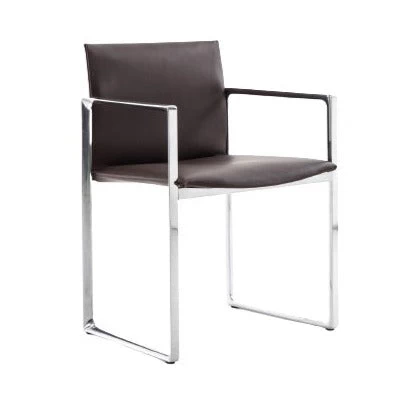 Dining armchair with a metal frame, back and seat in saddle leather.Â