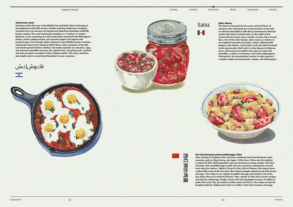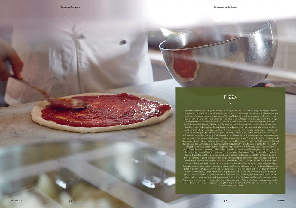 Originating from South America, tomatoes are one of the most produced vegetables in the world along with onions, cucumbers, and cabbages. There are over 25,000 species of tomatoes distributed throughout the globe, and they can be used in as many dishes in varied ways as there are varieties. With their unique savory flavor, tomatoes created distinctive food cultures across many regions, particularly in Spain and Italy. They also serve as the origin, essence, and symbol of Mediterranean cooking as they play a critical role in pizza, pasta, and gazpacho. On the other hand, they are widely used in mass-produced processed foods like ketchup and have become an important popular food with a potential to lead food culture into the future.