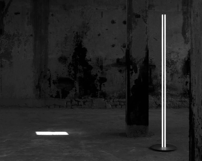 Coordinates Floor is a floor lamp with diffuse light composed of two vertical poles that can be oriented during installation, attached to a base with an anodized aluminum cover.
