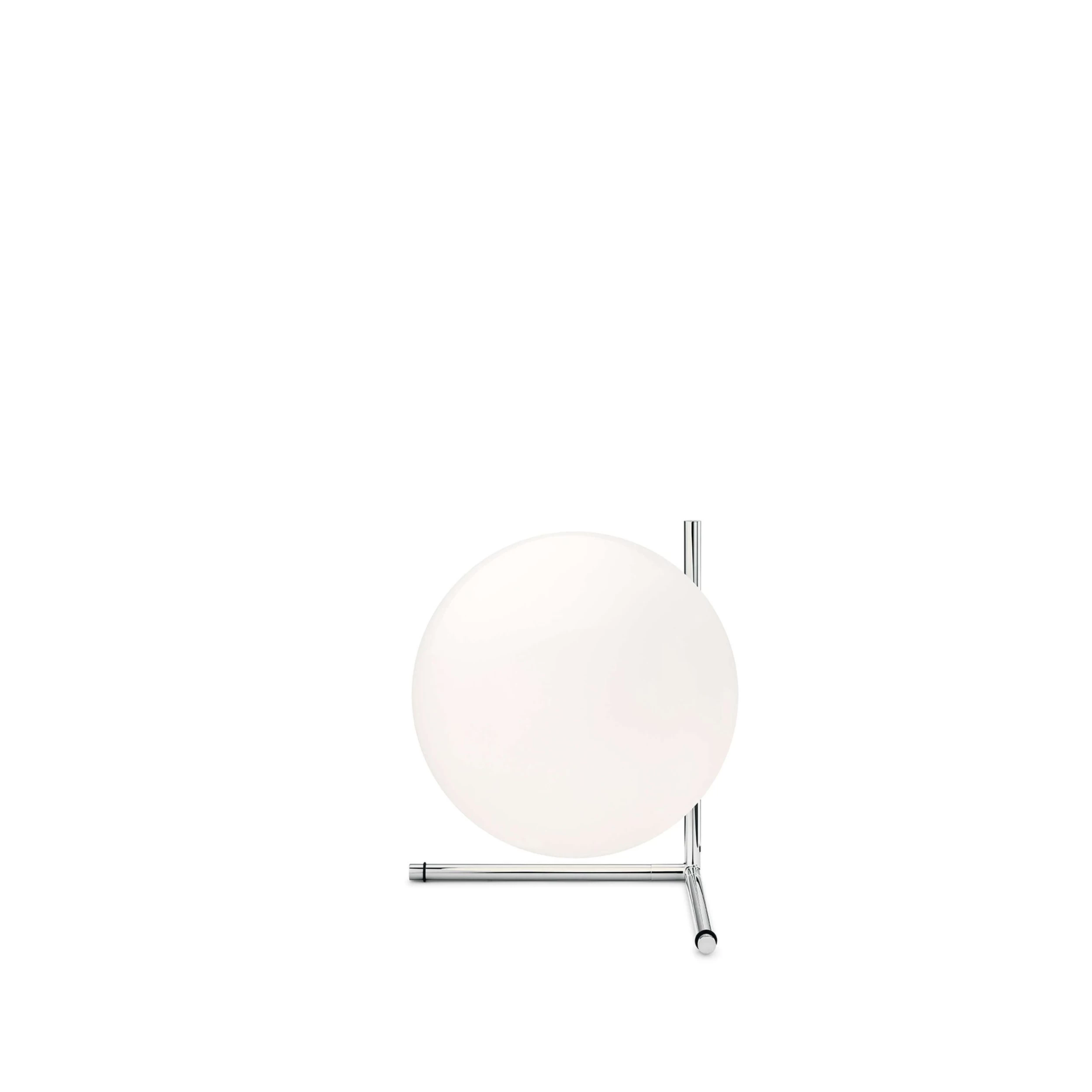 Dimmable table light with an opal blown glass diffuser and frame in chrome-plated steel or brass.  60W G9 frosted halogen lamp (bulb). 0-100% dimmer installed on the cord.Â