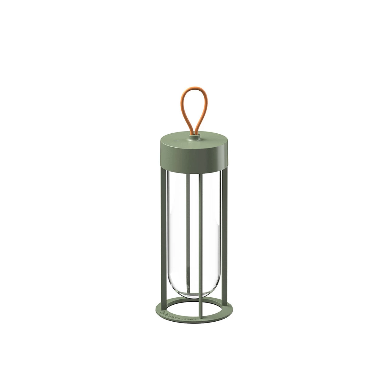 Portable lantern made of glass and aluminum with opalescent diffuser integrated in the head. The structural parts are made of die-cast and extruded aluminum treated with a chemical conversion process to protect against atmospheric agents.