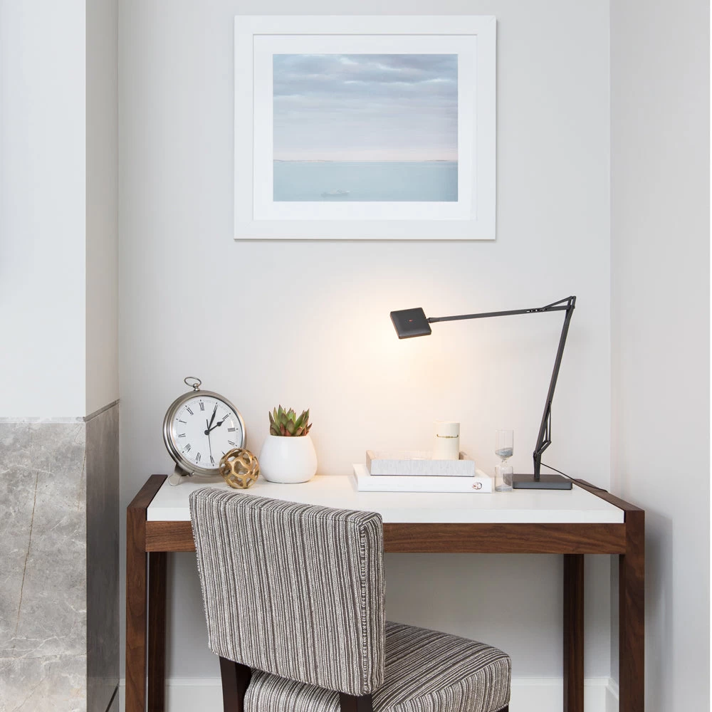 The newest addition to the popular Kelvin LED family, the Kelvin Edge offers the innovation and sleek design of the collection in a smaller package—without sacrificing output. Featuring the exclusive Edge Lighting Technology™ from which it takes its name, this table lamp combines efficiency with light intensity and emission magnitude to create the balanced, brilliant glow you’d expect from a much larger light.
