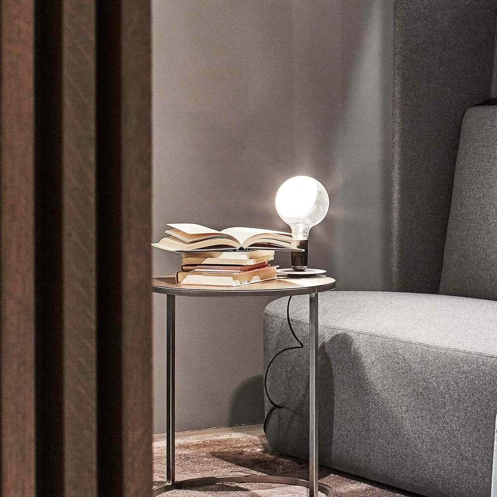 Its name means, literally, “bulb,” and it’s easy to see why with one look at this playful 1972 Achille Castiglioni design. This unique table lamp provides direct and diffused light through a partly sandblasted clear globe.