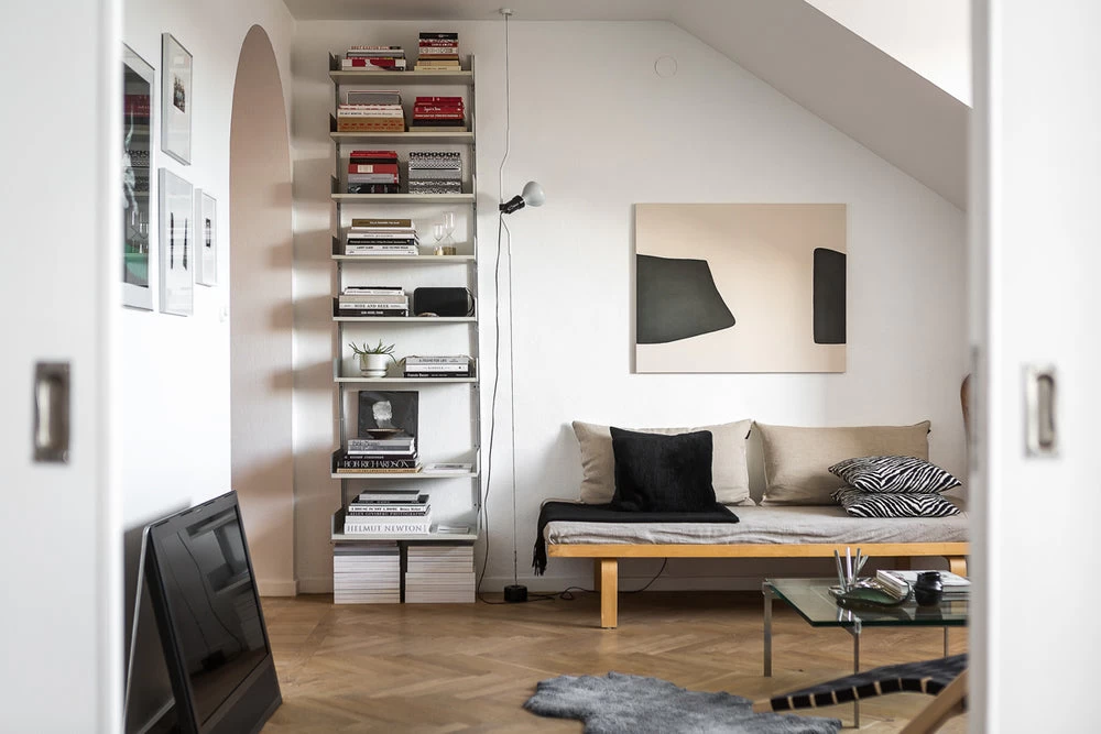 Borne out of a 1971 collaboration between Achille Castiglioni and Pio Manzù, the Parentesi was named for the parenthesis symbol—a visual reference to the nickel-plated shaped tube that lives on a floor-to-ceiling steel cable. The steel cable can reach up to 157″, and the tube allows the lamp head to move vertically along the cable to achieve a customized height.