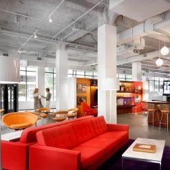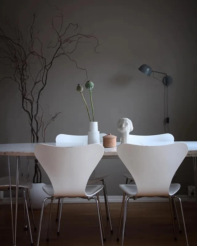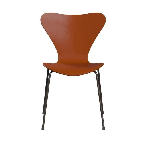 The Series 7™ chair is an icon in modern furniture history, designed by Arne Jacobsen in 1955. Its unique shape is timeless and incredibly versatile, displaying character without overpowering the eye. The chair is made from 9 layers of pressure moulded veneer for strength, flexibility and durability despite its slender form. This is the most popular design within Fritz Hansen’s chair collection. The 3107 has slim yet strong steel-tubed legs that complement the shell’s curved profile. Legs extend just beyond the edge of the seat, allowing chairs to be easily arranged in rows or stacked for storage. The base/legs are discreetly mounted to a circular disc beneath the seat further enhancing the clean, minimal aesthetic of Jacobsen’s design.
