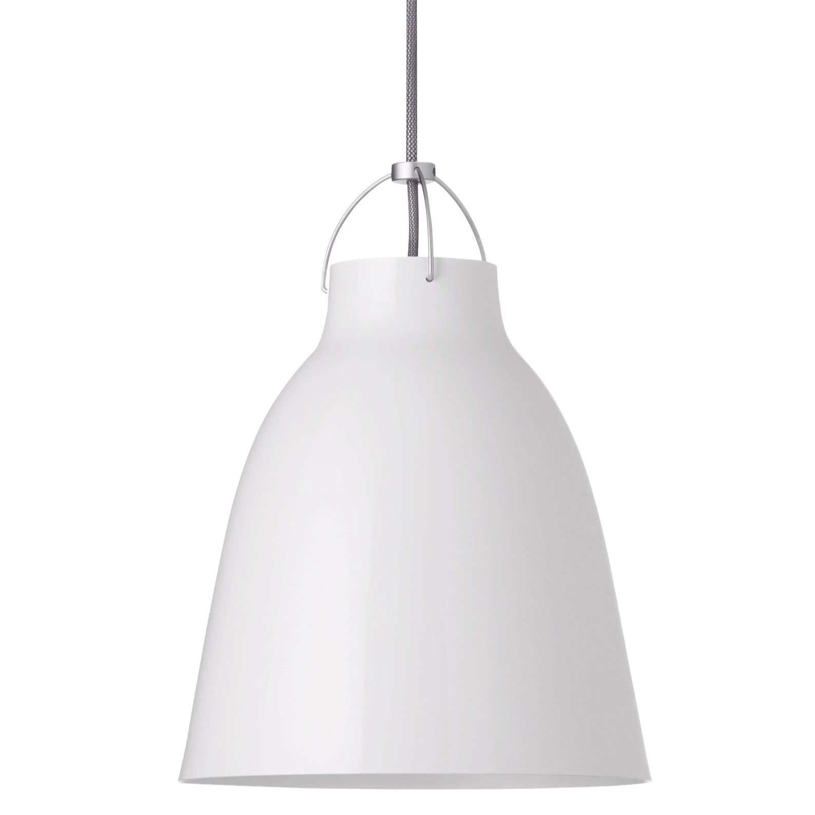 Steel and aluminum pendant light in a choice of matte or glossy colours.
