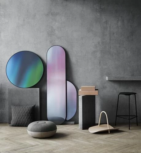 Printed multicolour mirror in a thin MDF frame. Can be hung vertically or horizontally.