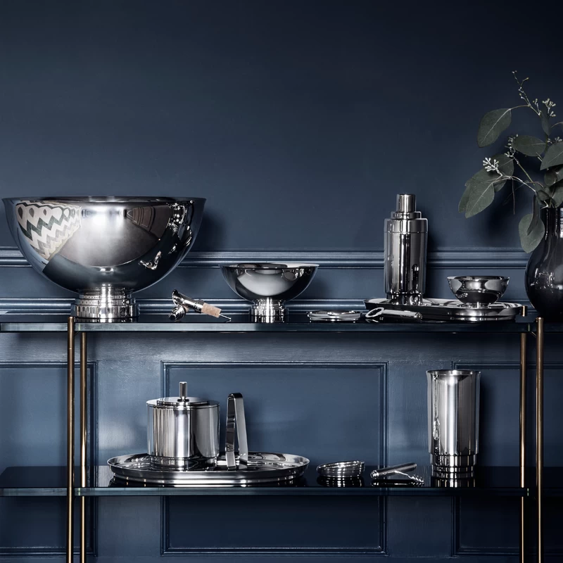 Georg Jensen’s elegant Manhattan collection of barware evokes the energy and style of New York in the jazz age. Graphic Art Deco lines are sophisticated and timeless and work in both classic and contemporary homes.
