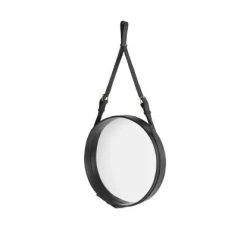 Glass mirror with a leather frame and strap. Available in three sizes.