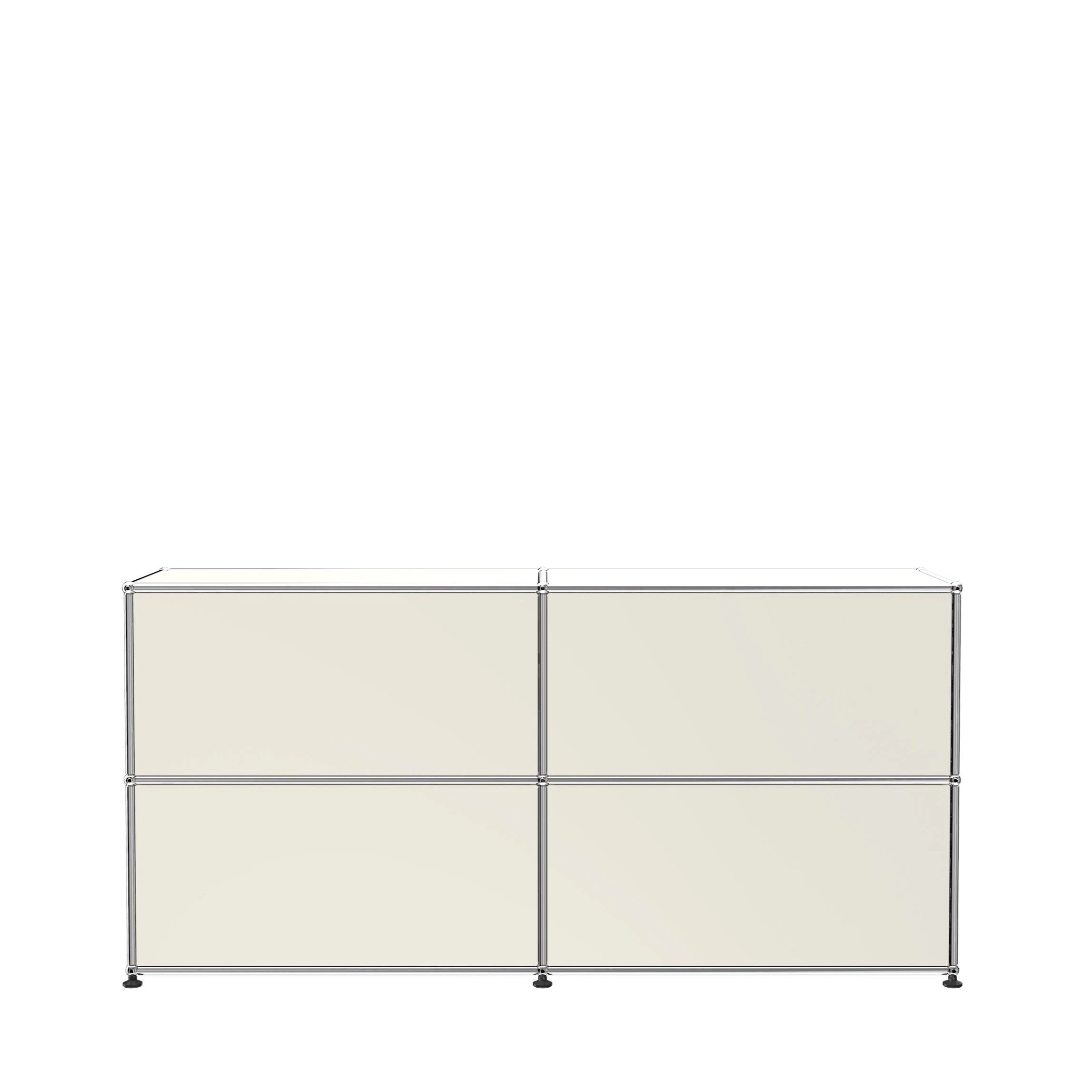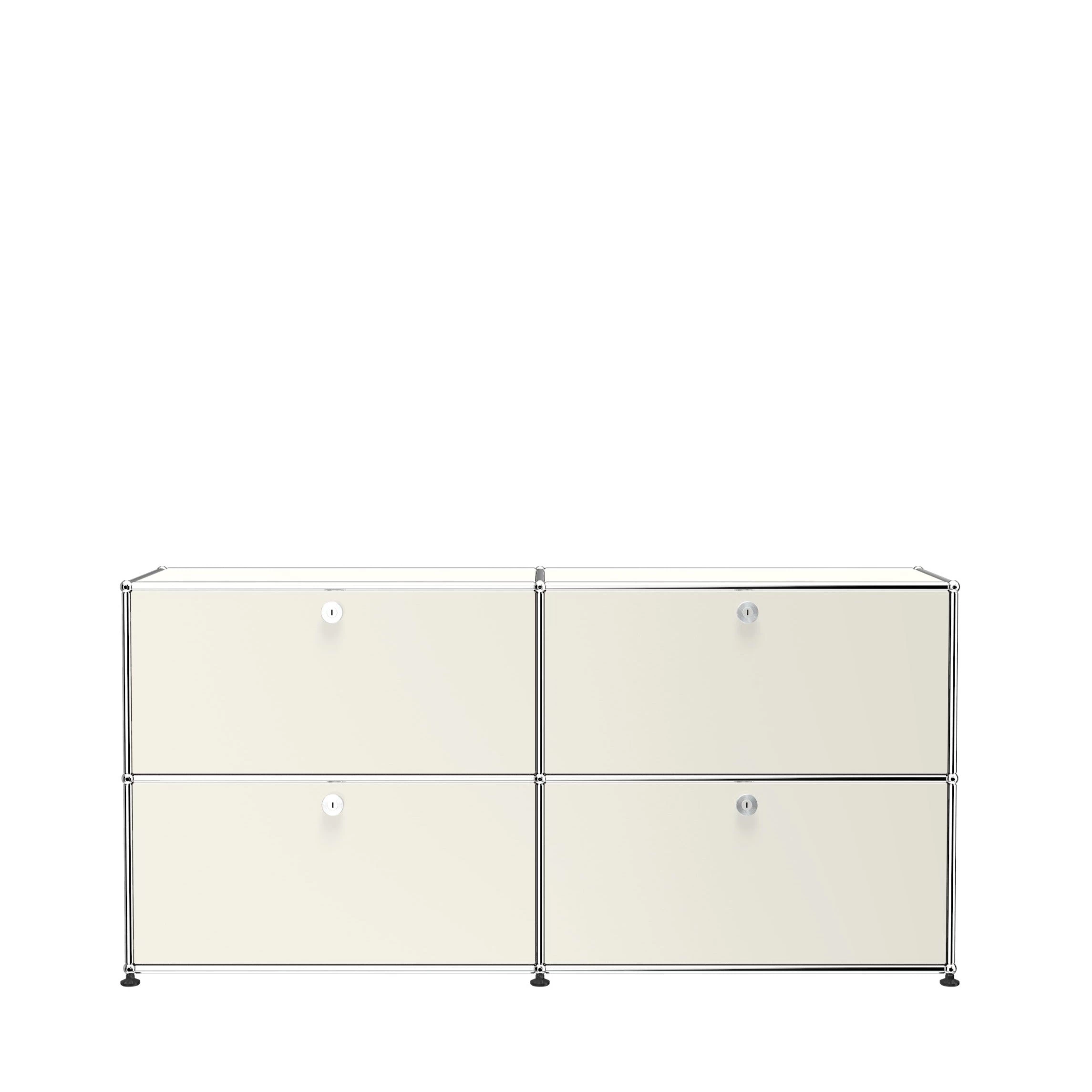 A timeless and versatile storage credenza with four drop down doors that lock with the twist of a coin. Available in a choice of standard colour finishes.Â