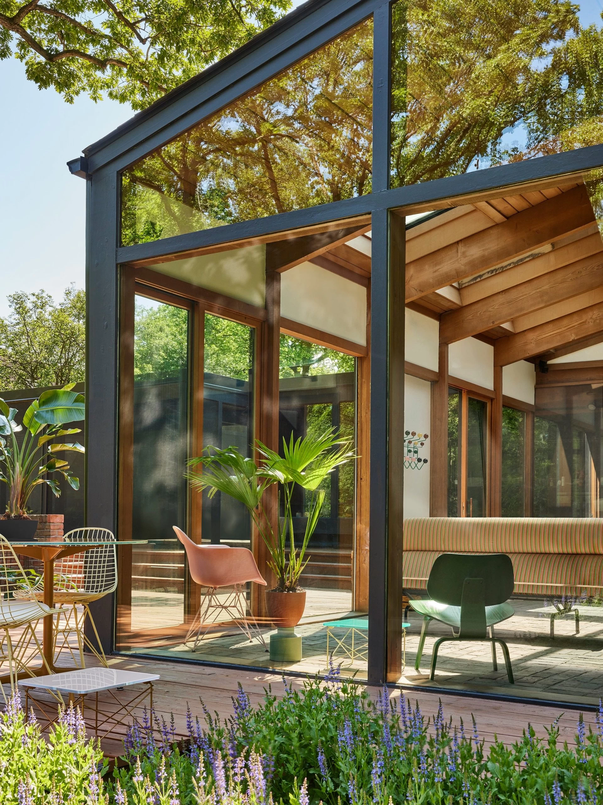 Inspired by a built-in that designers Charles and Ray Eames created for their home in Pacific Palisades, California, the Eames Sofa Compact (1954) sits on an airy pedestal of chromed-steel legs. With plush foam cushions supported by resilient webbing, it offers firm but flexible support from shoulders to knees.