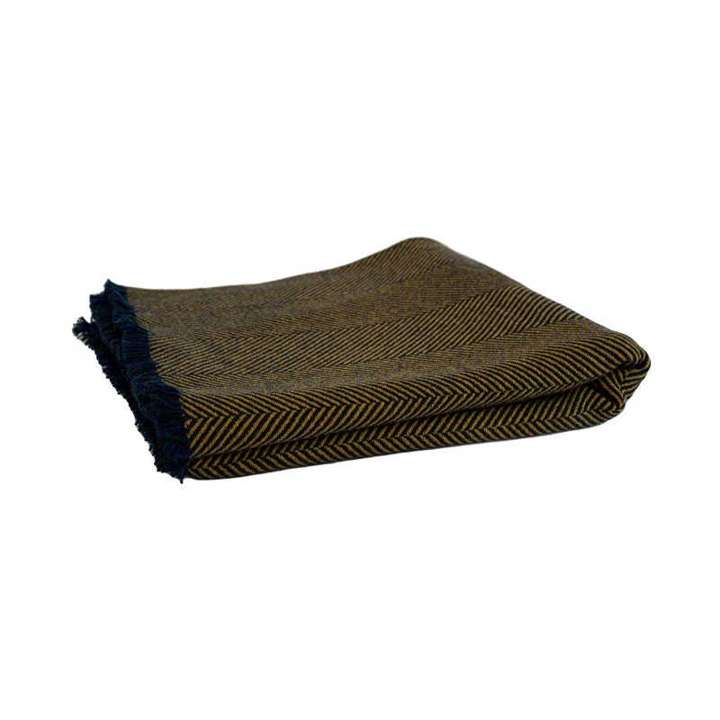 Woven 100% lambswool blanket featuring a fringe and a herringbone pattern in a choice of colours.Â