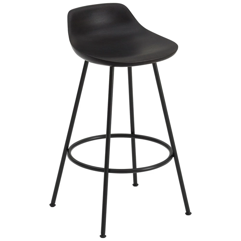 Stool with wood seat and metal frame, available in a choice of finishes. Available in two sizes.Â