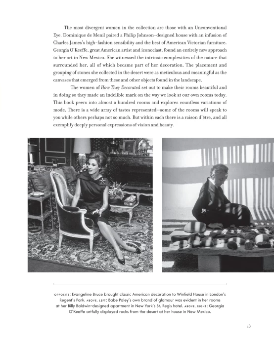 The book is presented in four sections that describe the aesthetic approaches that the ladies took in decorating their abodes: “The Fashionably Chic”, “The Unconventional Eye”, “In the Grand Manner”, and “Legacy Style”. Each interior illustrates the crucial aspect of the lady’s definitive taste. Some worked closely with decorating legends such as John Fowler, Albert Hadley, Billy Baldwin, Syrie Maugham, and Jean-Michel Frank. Others took to the task of decorating single-handedly—like Pauline Trigère, Sybil Connolly, Vita Sackville-West, and Fleur Cowles. The interiors of these trendsetting ladies defied their time and inspire and delight to this day. In How They Decorated, one can learn from the most notable style muses of the last century.