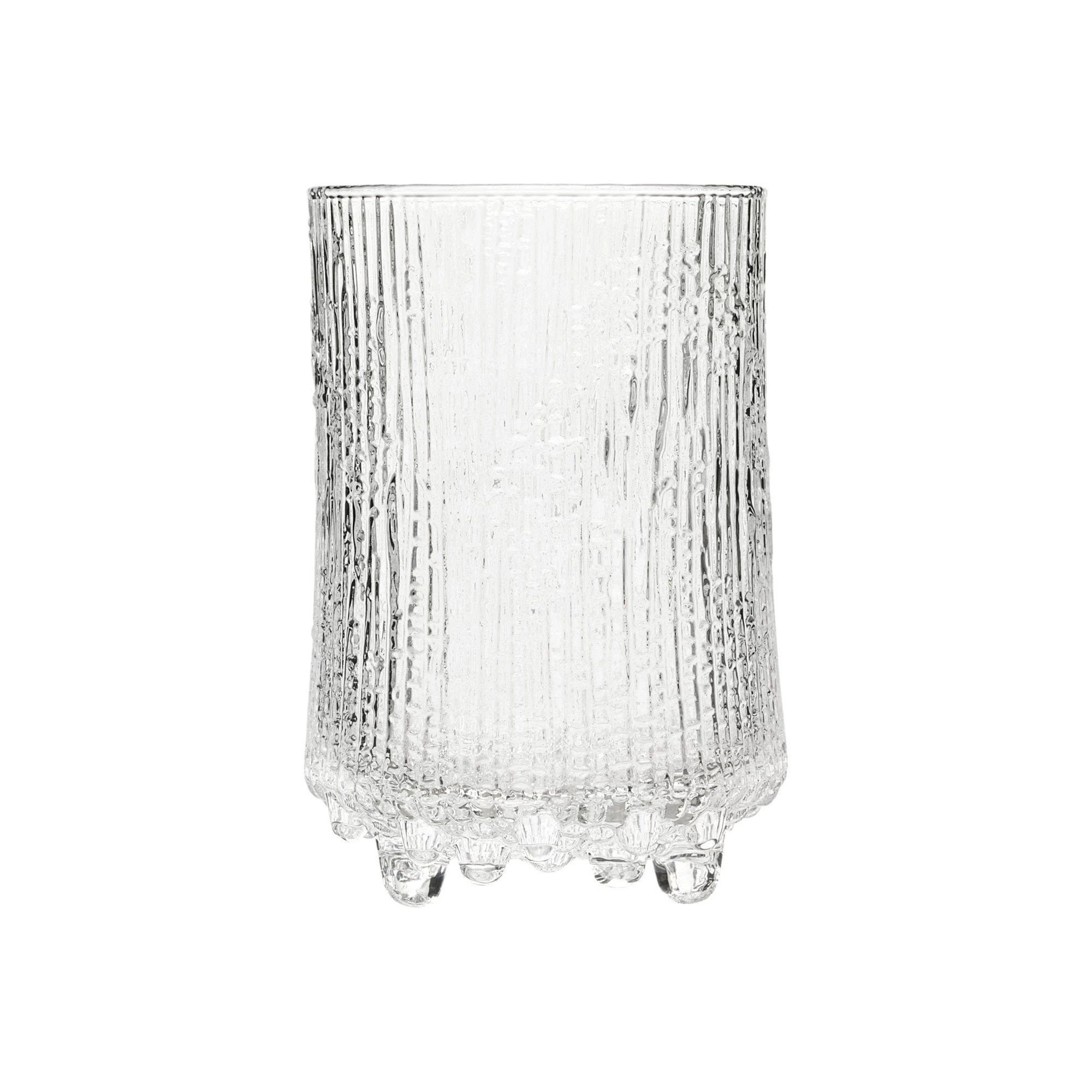 Multi-talented genius Tapio Wirkkala’s greatest inspiration came from his native Finland. With his iconic Ultima Thule, the artist defied the rules of glassblowing. Inspired by an ice-covered Finnish island, Wirkkala spent nearly a thousand hours with the glassblowers at the Iittala Glass Factory, to recreate this unique slice of Nordic nature. Featuring a round base supported by three ice peaks that float above the surface, the groundbreaking Ultima Thule collection brings a piece of arctic nature into any interior. A dynamic mix of art and function, the classic Finnish drinkware cemented its iconic status when Finnair began using it in first class. The Ultima Thule highball is perfect for serving cocktails.