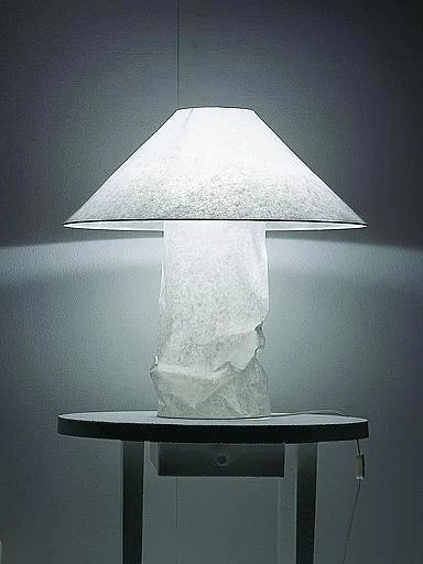 Table lamp made with Japanese paper and metal. The crinkled paper of Lampampe is an intended design attribute. Not suitable for rooms with high humidity.