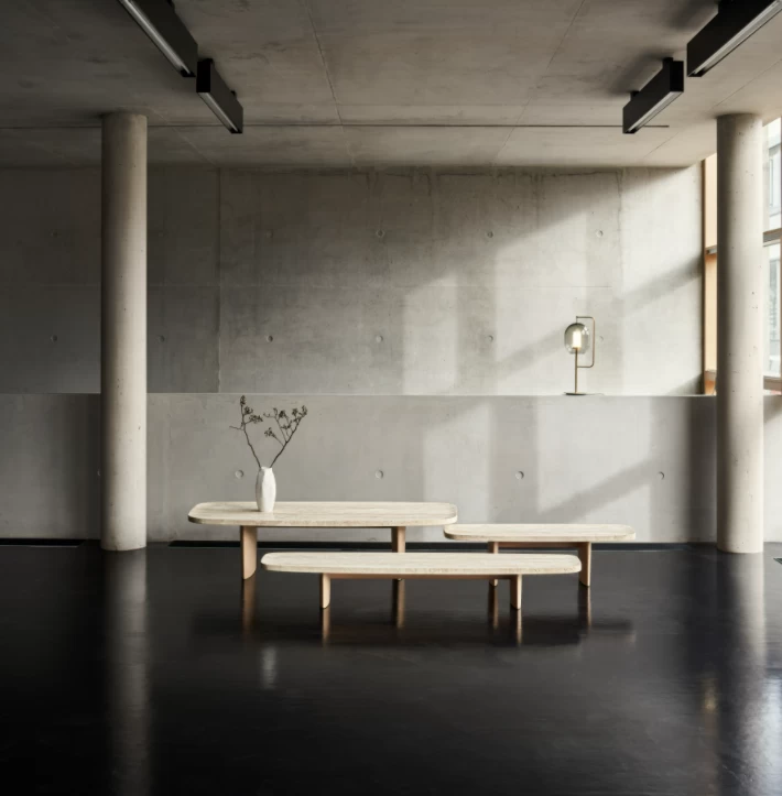 In our everyday existence, light serves us by enhancing everything around it, while it is often neglected itself. Here, the inspiration comes from the quintessential source of light; like its ancient predecessor, the fiery torch, this design simply consists of an upright rod with an illuminated tip. Celebrating the glorious spectacle of light itself, the tinted glass shade is a modest attachment that branches off the main support to gently shield its centrepiece.