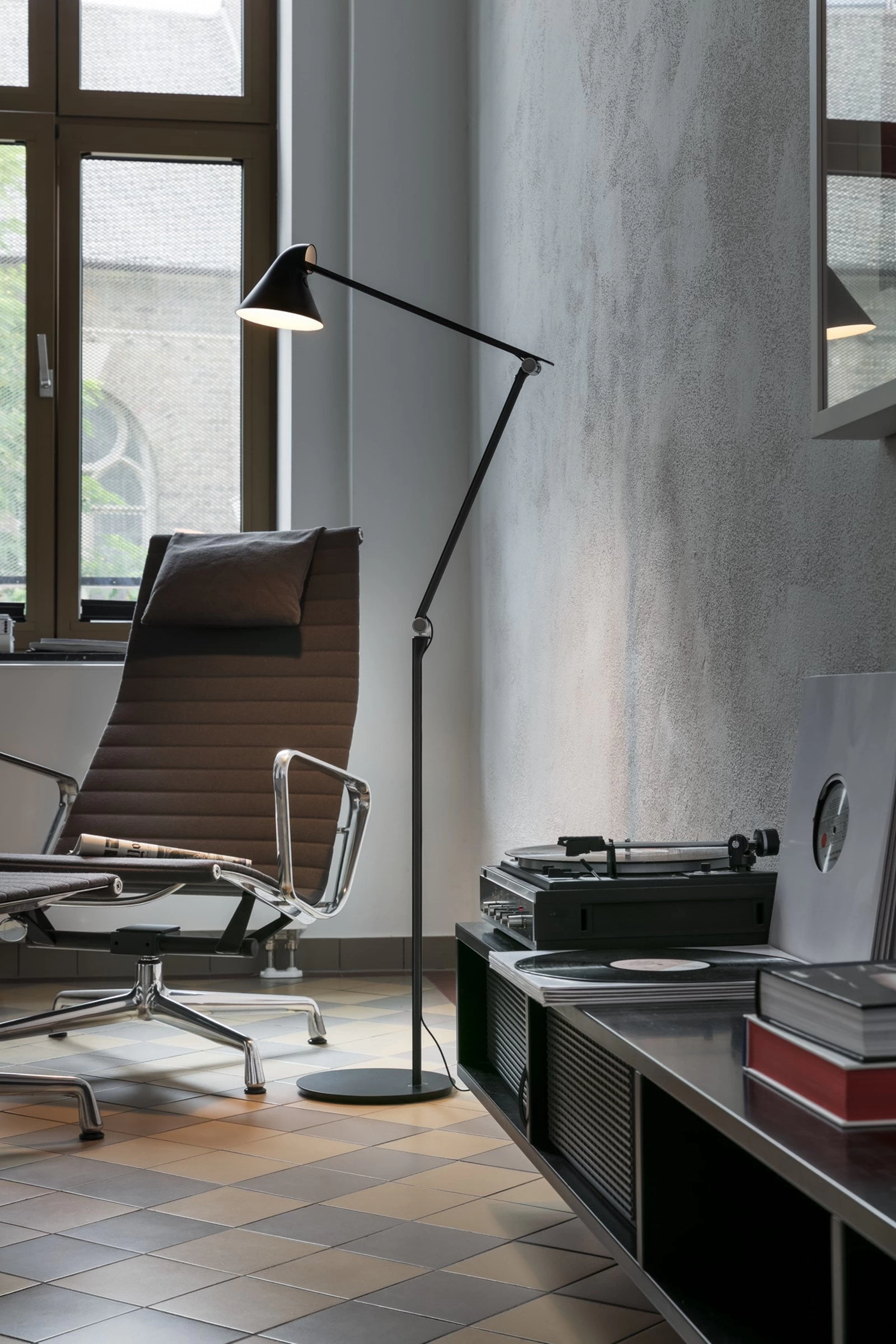 The NJP series was designed by Oki Sato, founder of nendo design studio, with the intention of producing a new interpretation of the classic anglepoise lamp. The NJP Floor lamp’s flexible head and arms provide exceptional adjustability. It is well-suited for use as a reading light beside an armchair or sofa, as the flexible design means the light can easily be adjusted to provide optimal lighting. It features an LED light source and is designed with the source positioned high up to avoid dazzling and unpleasant lighting. One refined yet practical detail is its chimney-shaped head reflecting some of the light through the rear and therefore illuminating the top of the arm – while allowing the heat from the light source to escape.