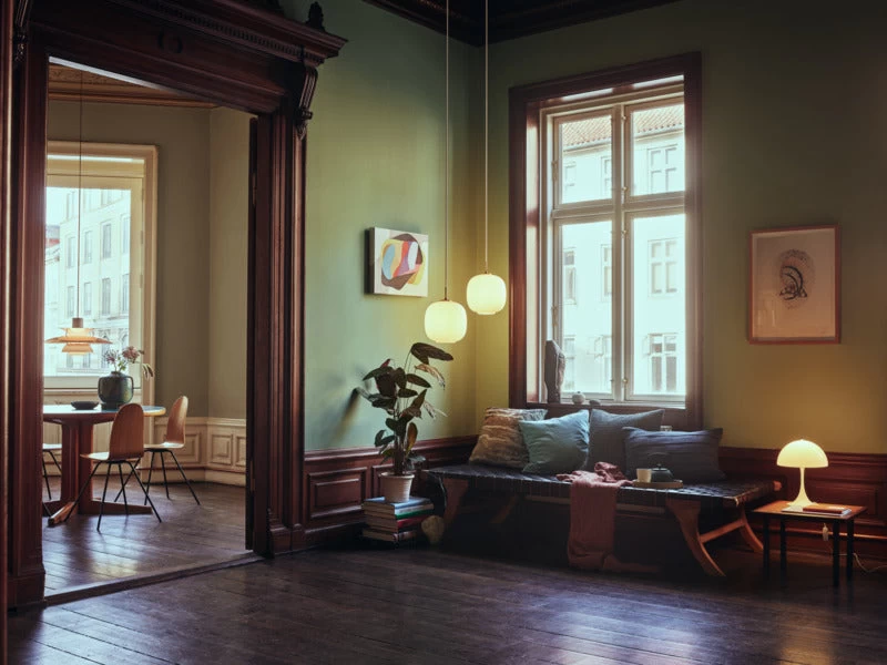 The designer and architect Verner Panton created Panthella together with Louis Poulsen in 1971. Panton’s figurative and playful design radiates his larger-than-life personality. Panthella stands out as one of Panton’s most significant design icons with its organic shape that mirrors the softest of light. The Panthella Mini lamp is a downscaled edition of Verner Panton’s popular Panthella Table lamp, featuring a metal shade available in various finishes or a white opal acrylic shade, spreading the light diffusely for a soft and appealing illumination of the surroundings. With its non-glaring light, the Panthella Mini serves as a beautiful example of Verner Panton’s brilliant sense of creating atmospheric illumination.