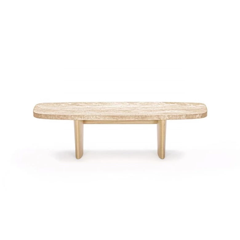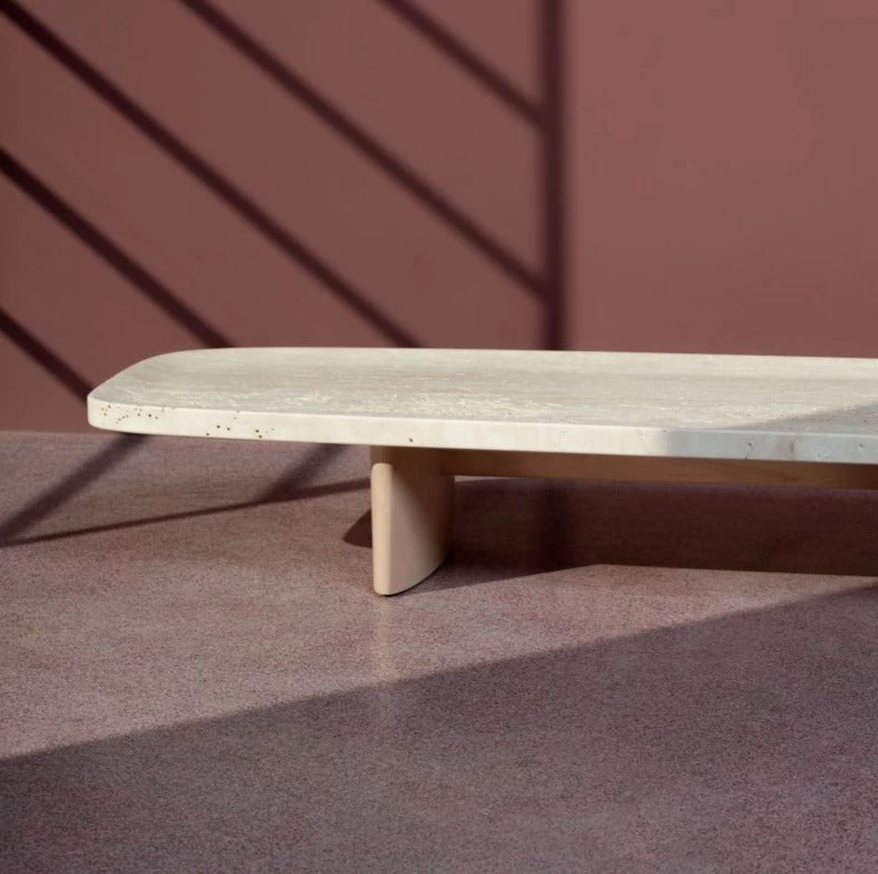 The Matéria Low Board series is characterized by its unusual dimensions and aura of tranquility. When taking a closer look, however, its nearly monochromatic appearance is revealed as an interplay of the porous travertine stone and smoothly finished wood. Matéria evokes an intuitive urge to touch the surfaces, to feel the natural textures.