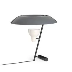The table lamp designed in 1951 is a study in balance and light reflection through a screen, a recurring theme in Gino Sarfatti’s work. Model 548 provides both reflected and diffused light due to the adjustable spotlight that is directed up towards a reflecting screen.