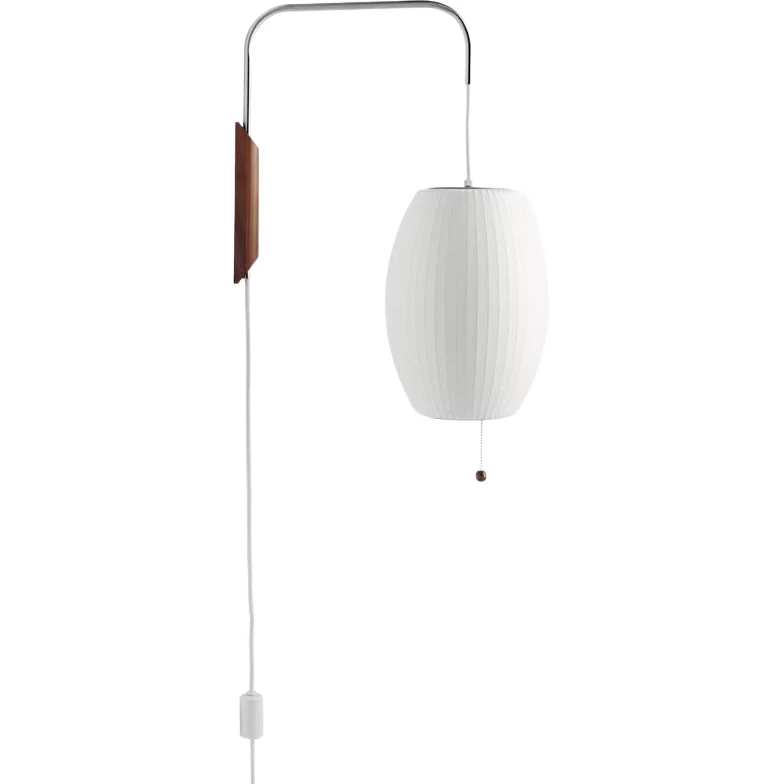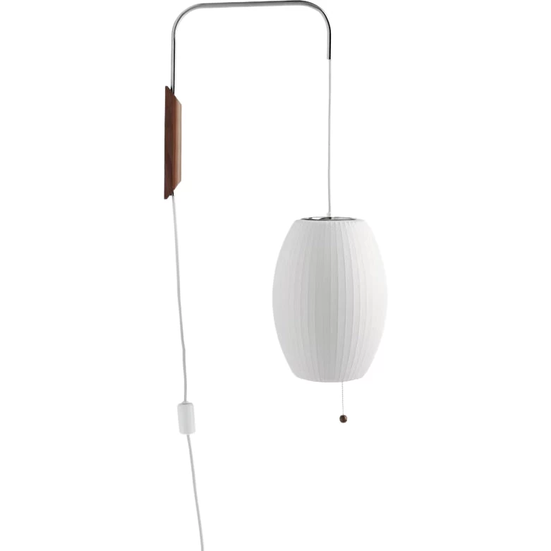 With its plump shade adorned with thin vertical lines, the Nelson Cigar Wall Sconce plays with shape and geometry. The origin of these lamps was in 1952 when Nelson was inspired by set of Swedish hanging lamps that were tediously crafted with a silk covering. The bigger challenge, however, was their expensive price. Nelson decided to make his own set, and arrived at an innovative process that replaced the silk shade with a translucent plastic material, making them available at a modest price.
