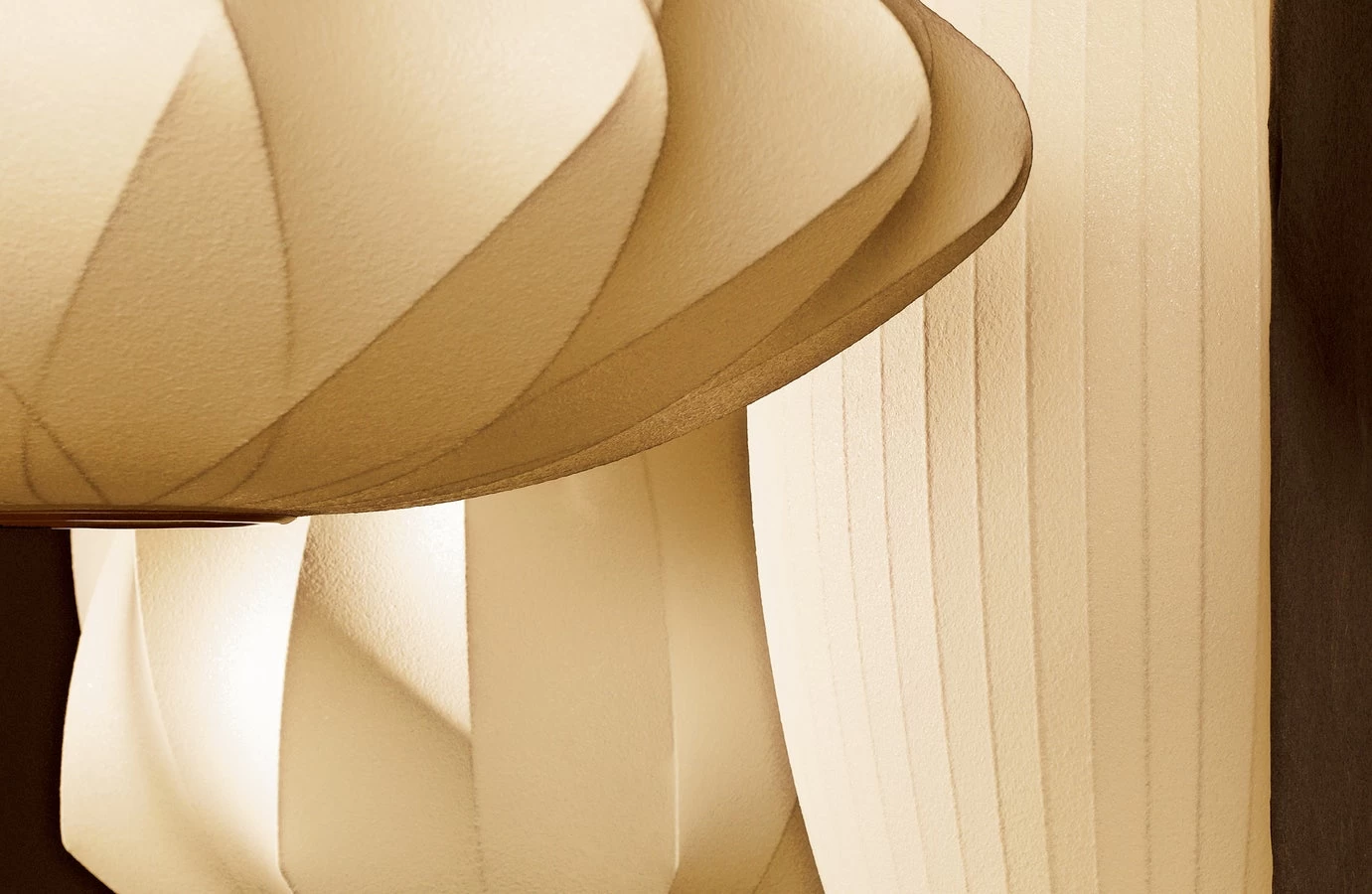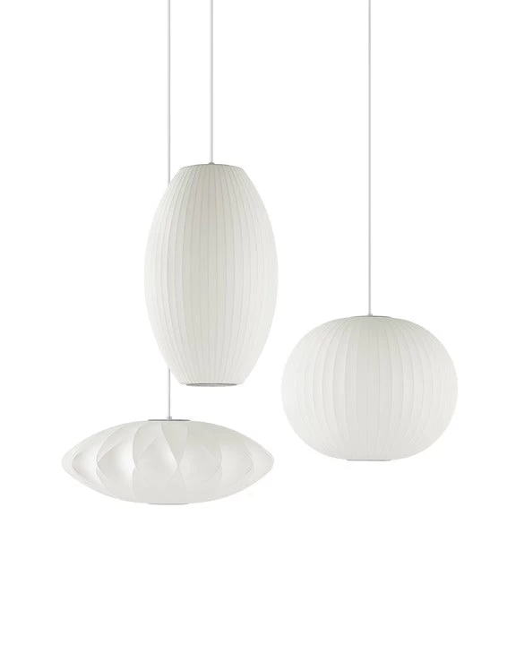 A classic George Nelson design, the Nelson Saucer CrissCross Bubble Pendant has a bisecting pattern in its understructure, which gives the lampshade a lovely contour. This pendant light comes with a 6-foot long cord that allows it to be attached to a ceiling plate and delicately hover overhead. Nelson first designed the Bubble Lamps in 1952, when he came across a set of Swedish hanging lamps that he admired. Their expensive price prompted Nelson to design his own. The result was a series of elemental, spherical shapes like a rounded apple, a wide saucer, an elongated cigar, and a shapely pear, among others