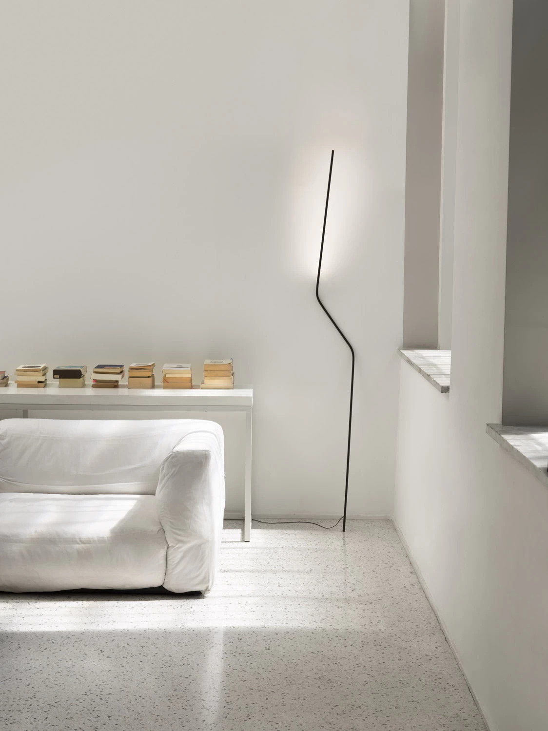 Neo is a hyper-contemporary movable lighting object: a versatile aluminium silhouette, capable of lying on the wall without a base. The body rotates 180° for a direct or indirect light.Â